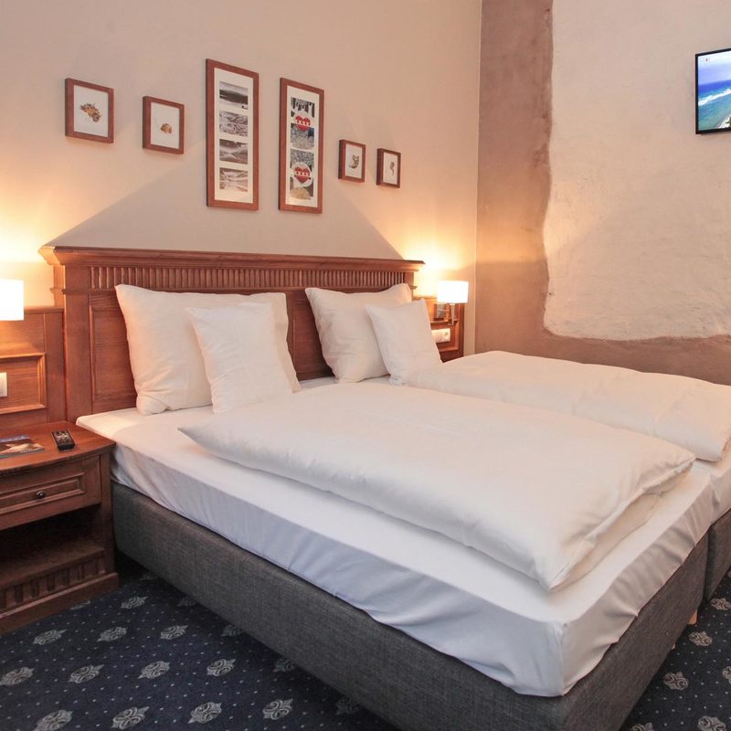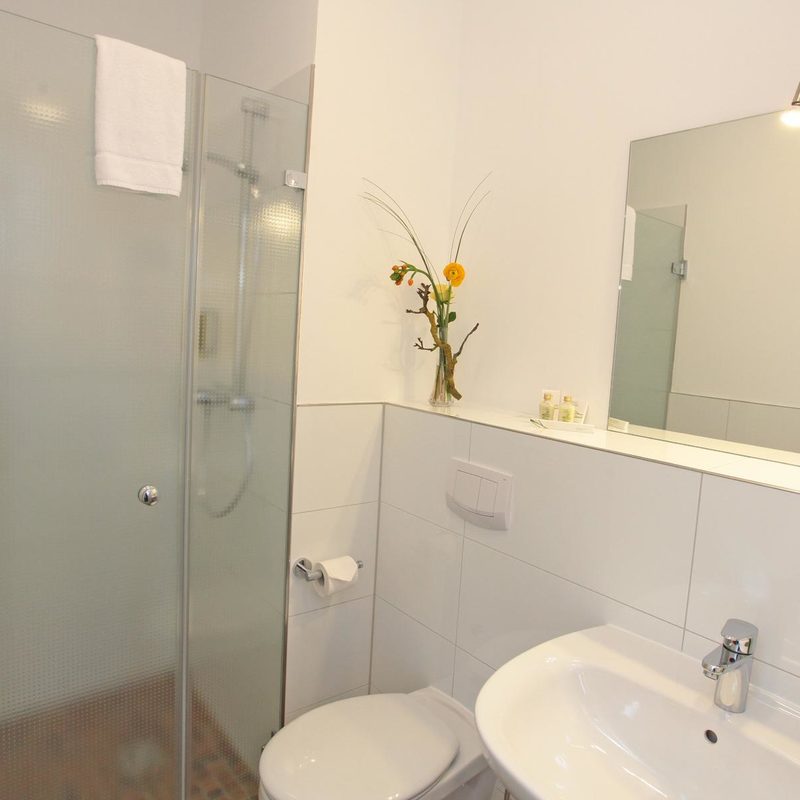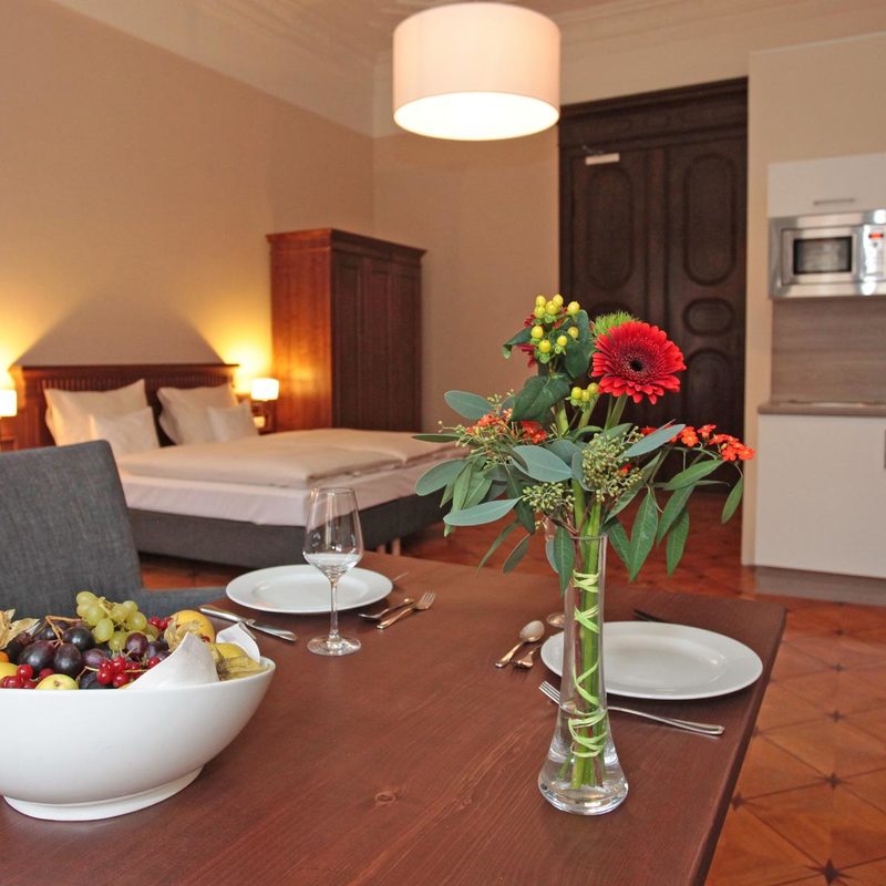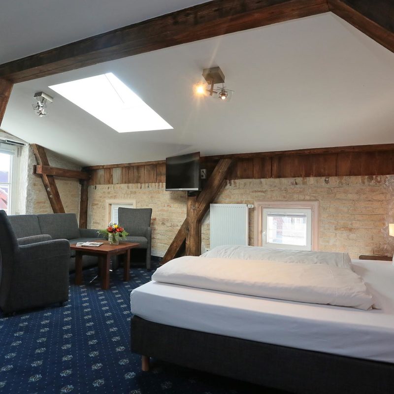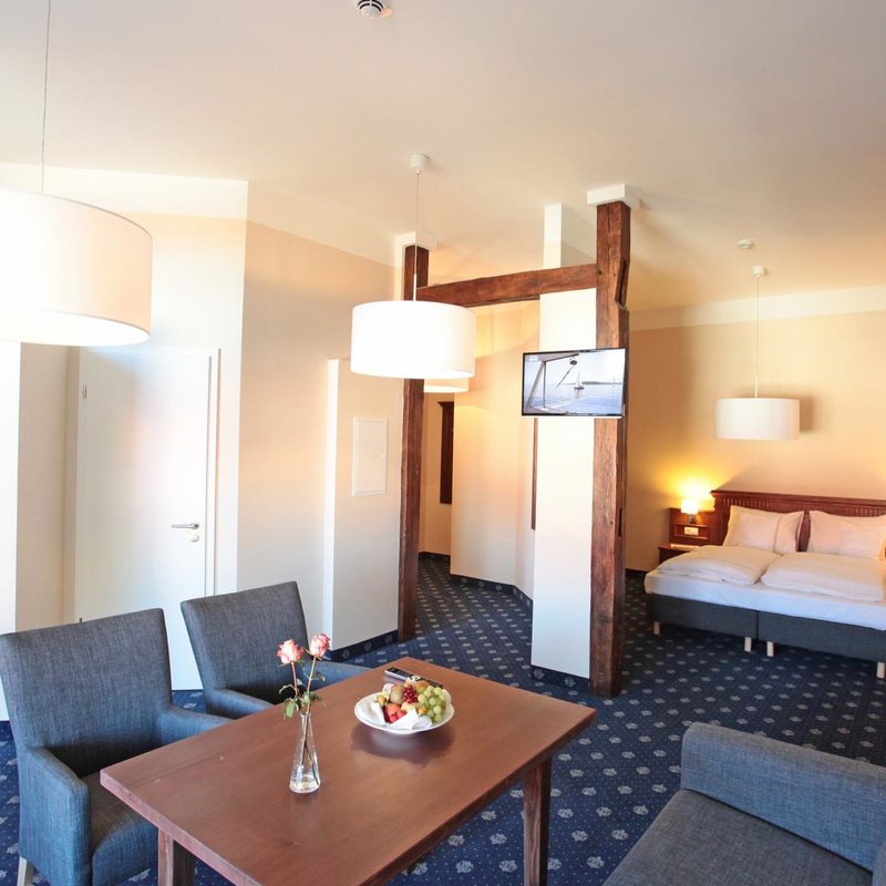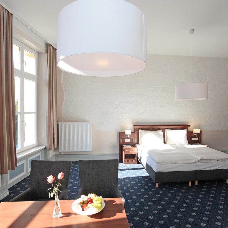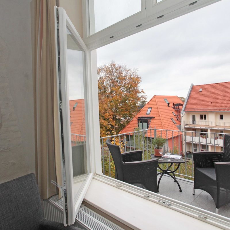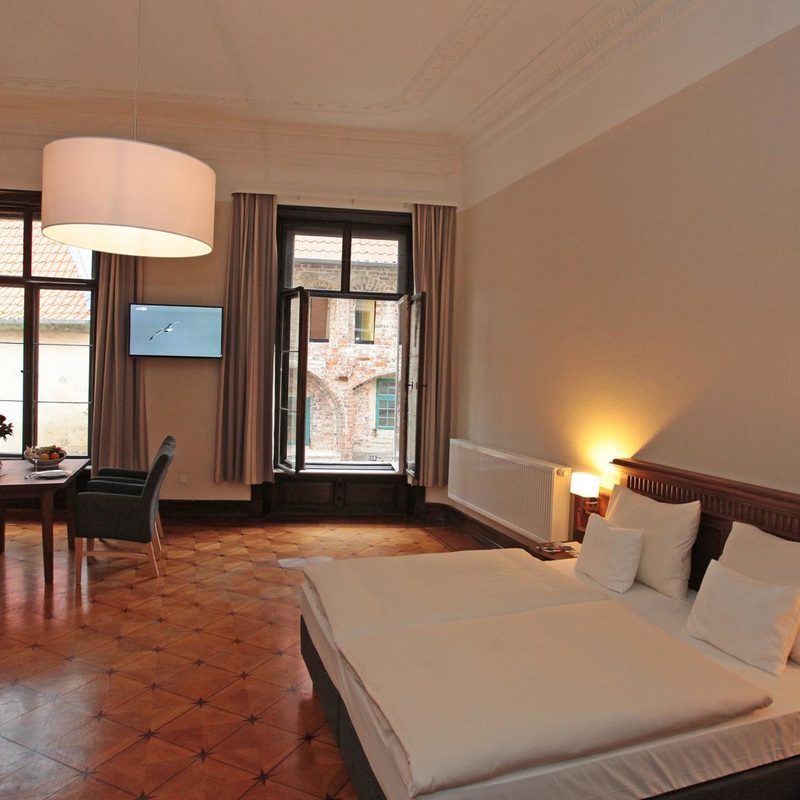 The deluxe apartments are between 34 to 49 sqm and are located on the 1st and 3rd floor of the house. The deluxe apartments have a view of the Schillstraße and the old town of Stralsund or to the green inner courtyard.
