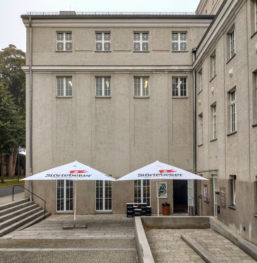 The backstage is not only literally at the gates of the city, but actually right in front of one of the two remaining historic city gates, the Kniepertor.